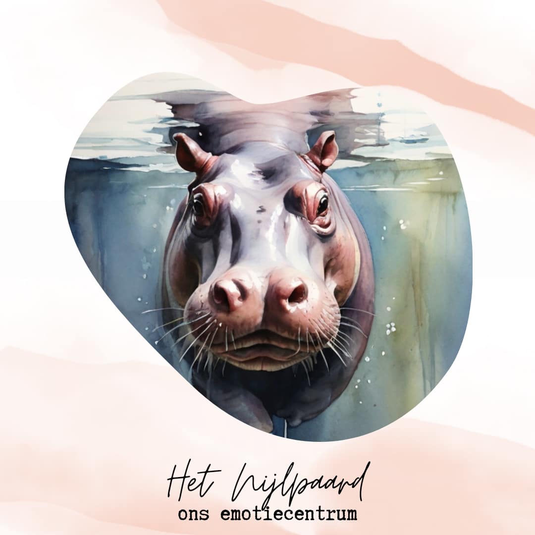 Het Nijlpaard is het emotiecentrum van jouw brein. Het Nijlpaard laat zich leiden door de big 5: boos, bang, bedroefd, bedrukt en blij. Emoties worden vaak groot gevoelt. Precies passend bij het Nijlpaard. Ze heeft een grote bek en wil gehoord worden. Als er niet naar haar geluisterd wordt, gaat ze gewoon harder schreeuwen. Net zo lang tot dat je haar opmerkt. Je kan haar onderwater duwen, maar dan gaat ze dood. Ze heeft wel lucht nodig.